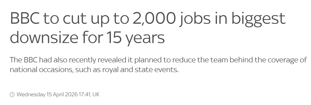 ● BBC将裁员多达2000人,系15年来最大规模裁员