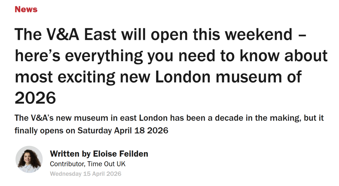 据英媒报道,作为英国最大的艺术与设计博物馆之一,维多利亚与阿尔伯特博物馆东馆(V&A East)将于4月18日在伊丽莎白女王奥林匹克公园正式开放。